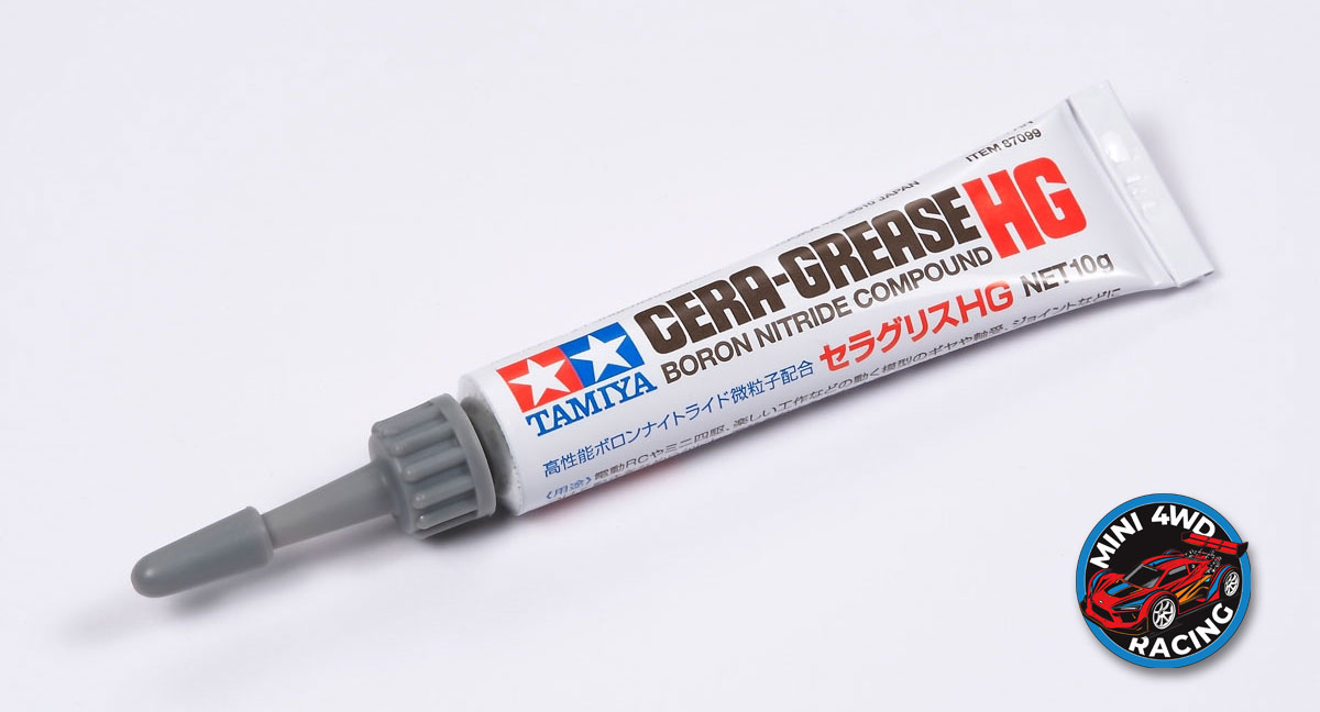 Tamiya's Cera-Grease is a heavy duty lubricant that I use on all the gears in the drivetrain. It helps the gears break in and well as keeping the drivetrain quiet. I use it liberally during the initial application process and clean out any excess after a couple runs.