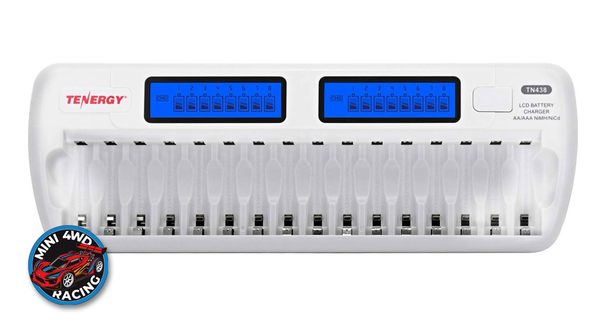 The Teneregy TN438 is the perfect charger for getting up to 16 cells charged at one time. It has a charge rate of 2A - yes, a bit high - but it's designed to get them up and ready quickly. It's got a nice LCD display to show the charge process and has auto-off once the cells are done.